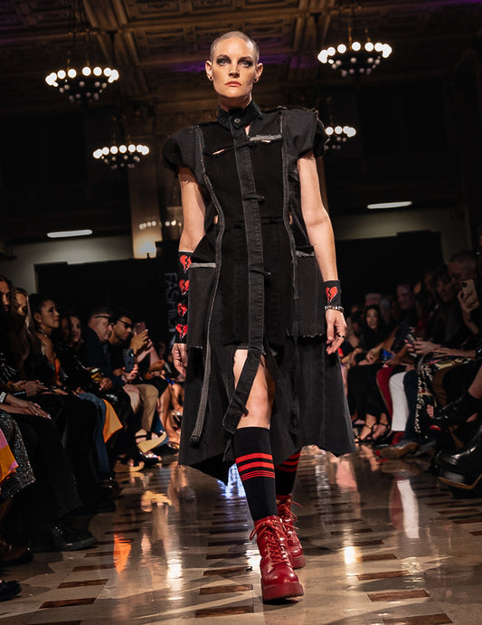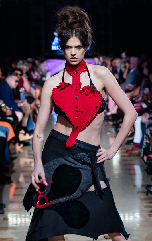 Recycled Denim Skirt with Black Velvet Broken Heart