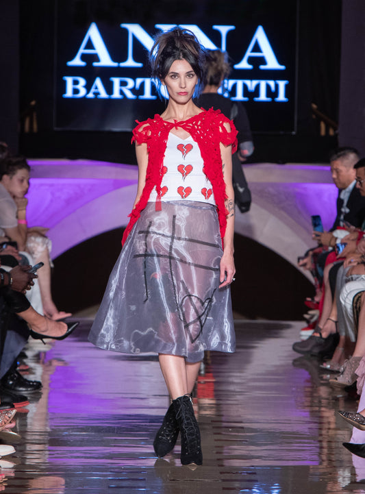 Silver Textured Skirt with Embroidered Velvet Broken Heart